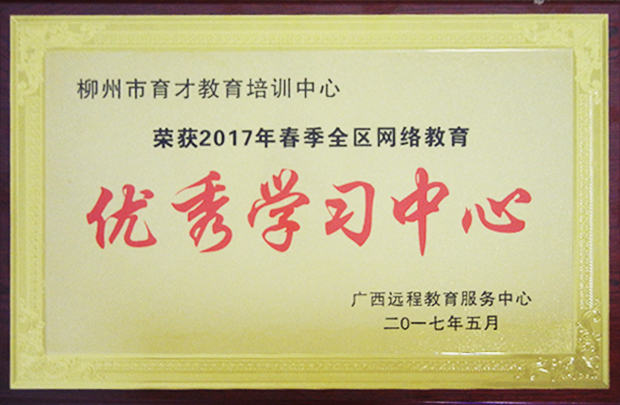 育才教育榮獲2017年春季全區(qū)網(wǎng)絡教育“優(yōu)秀學習中心”稱號