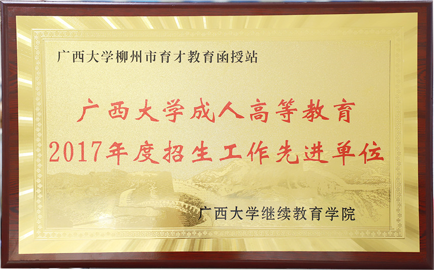 據(jù)悉,育才教育自2016年在教育廳備案為廣西大學(xué)育才函授站,因工作出色,連續(xù)3年榮獲了廣西大學(xué)“招生工作先進(jìn)單位”。