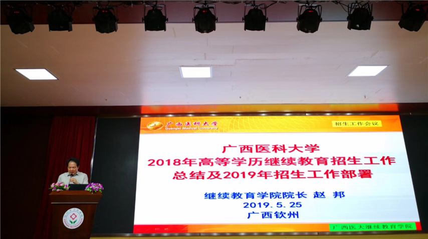 5月25日,廣西醫(yī)科大學(xué)2018年高等學(xué)歷繼續(xù)教育招生工作總結(jié)及2019年招生工作部署會議在欽州市衛(wèi)生學(xué)校隆重舉行,廣西醫(yī)科大學(xué)繼續(xù)教育學(xué)院院長趙邦教授、副院長劉慶委、李春燕以及各市衛(wèi)校、合作醫(yī)院教學(xué)站負(fù)責(zé)人和老師70多人參加了會議,會議由劉慶委副院長主持。
