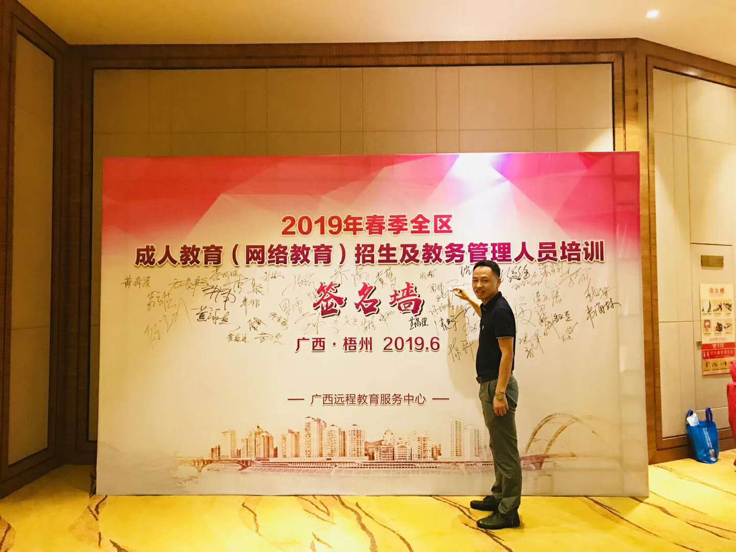 6月13-14日,廣西廣播電視大學(xué)2019年春季全區(qū)成人教育(網(wǎng)絡(luò)教育)招生及教務(wù)管理人員培訓(xùn)會議在梧州順利召開,廣西廣播電視大學(xué)副校長董塔健、網(wǎng)絡(luò)教育學(xué)院院長陶群、副院長唐建軍及各教學(xué)點負(fù)責(zé)人和相關(guān)管理人員80余人參加了會議,育才副校長王志男、南寧運營中心副總監(jiān)劉婉麗參加了會議,會議由陶群院長主持。