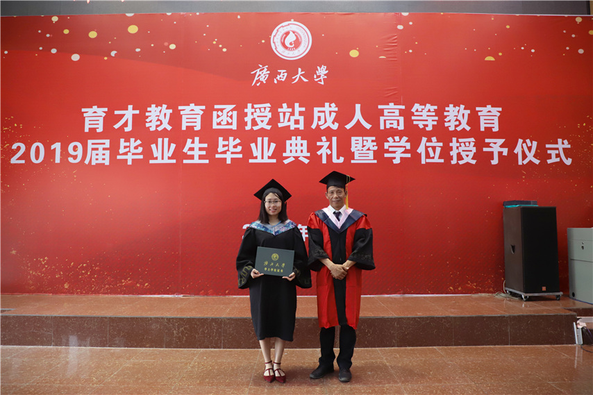 函授站站長蔣華老師向2019屆畢業(yè)生表示誠摯的祝賀,對蘇兆成院長的到來表示熱烈歡迎,向廣西大學送教上門表示衷心的感謝,他介紹了本屆畢業(yè)生的情況,希望畢業(yè)生學會感恩,不斷學習,報效社會,同時關心母校的發(fā)展,最后提醒畢業(yè)生妥善保管畢業(yè)證和畢業(yè)生檔案。