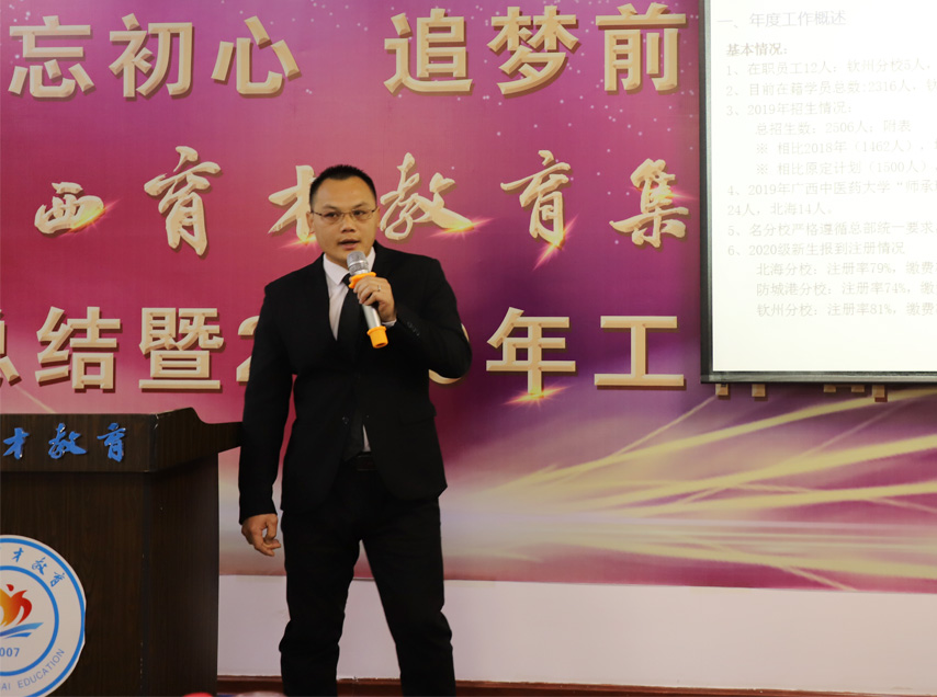 1月18日,集團2019年年終工作總結(jié)暨2020年工作部署大會在柳州本部隆重舉行。集團聯(lián)合黨委書記、董事長、總經(jīng)理、培訓學院院長蔣華、集團總校校長梁國坤、集團聯(lián)合黨委副書記、副總經(jīng)理、副校長王志、集團聯(lián)合黨委紀檢委員、副總經(jīng)理、副校長李彩梅、集團聯(lián)合黨委委員、副總經(jīng)理、副校長蔣亮、集團聯(lián)合黨委宣傳委員、副總經(jīng)理、副校長王麗、集團聯(lián)合黨委委員、培訓學院副院長趙彬等黨政領(lǐng)導班子成員及全體教職工參加了大會。