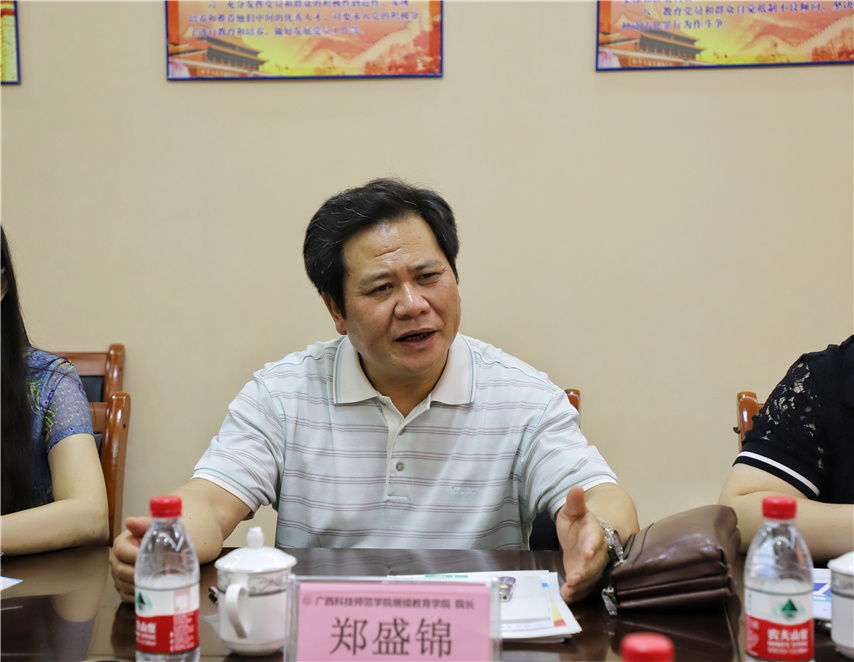 ▲廣西科技師范學(xué)院繼續(xù)教育學(xué)院院長(zhǎng)鄭盛錦講話