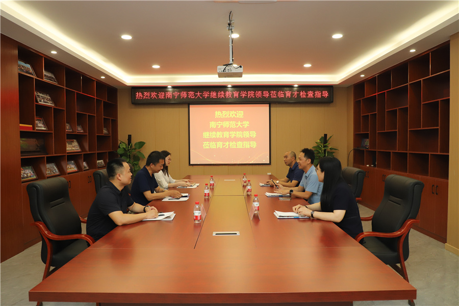 6月28日,南寧師范大學(xué)繼續(xù)教育學(xué)院院長(zhǎng)徐健,副院長(zhǎng)葉郁,成高中心主任伍應(yīng)樹一行3人蒞臨集團(tuán)柳州本部檢查指導(dǎo),集團(tuán)黨委副書記、副校長(zhǎng)王志,黨委委員、副校長(zhǎng)李彩梅,蔣亮陪同并參加了座談會(huì)。