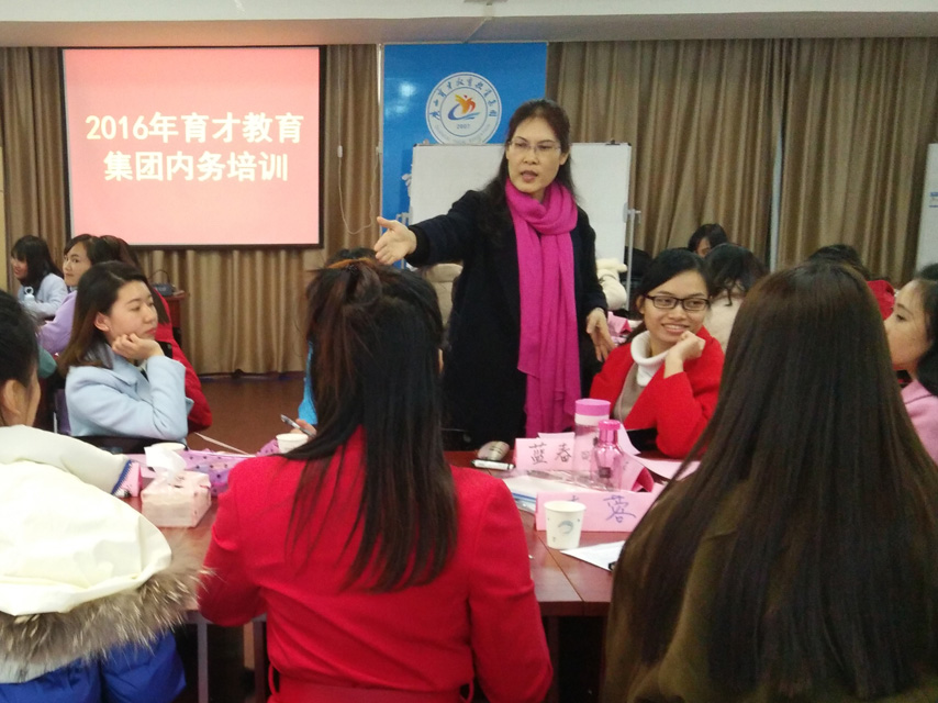集團為此次培訓做了精心的準備,選派了王志校長、李彩梅副校長以及優(yōu)秀的部門主任擔任培訓老師。培訓為期兩天半,主要內容包括:育才的企業(yè)文化內涵建設、學籍管理流程、教學管理流程、班主任崗位職責、人事行政制度等。培訓以課件講授、小組討論、師生互動等多種形式組成。培訓結束后對參訓學員進行了統(tǒng)一考試,最后是總結分享會。分享會上,學員依次上臺表達了自己的學習心得,一致認為此次培訓班的形式和內容都非常好,幾天的學習讓她們獲益良多,紛紛表示要將自己所學運用到工作中去。