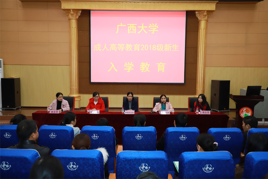 廣西大學(xué)繼續(xù)教育學(xué)院院長蘇兆成代表學(xué)校向全體成教新生表示熱烈的祝賀,對長期以來對廣西大學(xué)成教工作辛勤付出的育才教育函授站表示衷心的感謝。他著重介紹了廣西大學(xué)悠久的發(fā)展歷史、雄厚的師資隊伍建設(shè)等優(yōu)勢以及近年來在成人高等繼續(xù)教育方面所取得的成績。蘇院長從“四學(xué)”給新學(xué)員上了一堂生動的課,即學(xué)不學(xué)?學(xué)什么?去哪里學(xué)?怎么學(xué)?他希望2018級的新同學(xué),協(xié)調(diào)解決好工作、生活和學(xué)習(xí)三者之間的矛盾,根據(jù)函授教學(xué)的特點和教學(xué)站的教學(xué)要求,合理安排學(xué)習(xí)時間、提高學(xué)習(xí)效率,學(xué)有所成,在兩年半的學(xué)習(xí)生涯中,全面提高德商、智商和情商,以適應(yīng)社會發(fā)展的需要。風(fēng)雨砥礪,桃李芬芳。2018年正逢廣西大學(xué)90年校慶,入讀廣西大學(xué)繼續(xù)教育學(xué)院的新生們將與眾多的老校友們一起共慶母校90歲華誕。